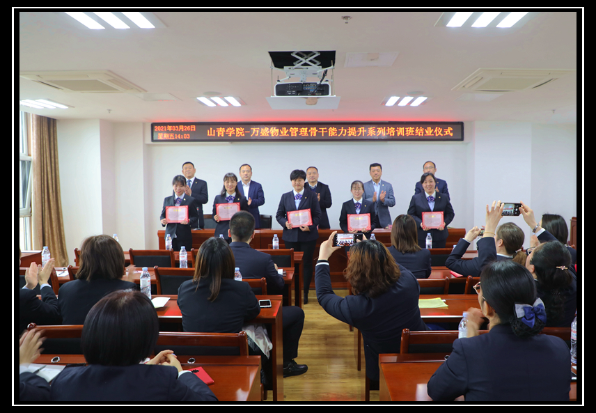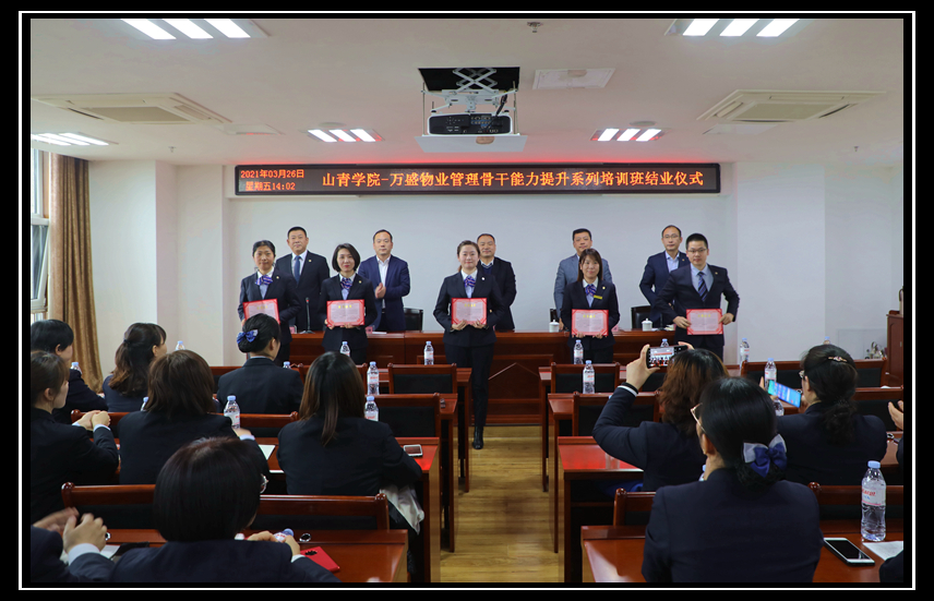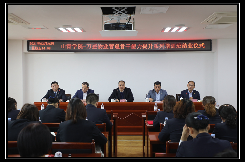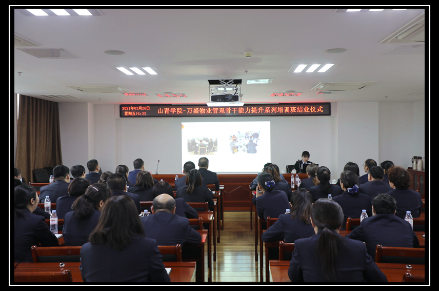 為進(jìn)一步鞏固學(xué)習(xí)成果,加深后期雙方交流合作,3月26日下午,“山青學(xué)院-萬(wàn)盛物業(yè)管理骨干能力提升系列培訓(xùn)班”結(jié)業(yè)儀式在四建地產(chǎn)大會(huì)議室隆重舉行。
