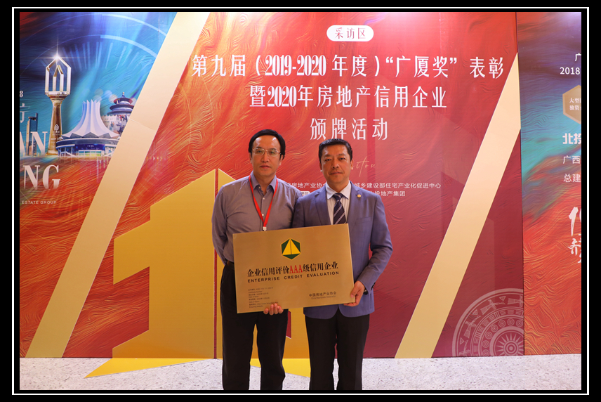 2021年4月8日至9日,由中國房地產業(yè)協會主辦的“第九屆‘廣廈獎’表彰暨2020年度房地產信用企業(yè)頒牌儀式”在廣西南寧隆重召開。集團公司黨委書記、董事長曹曉巖出席儀式,集團公司副總經理、四建地產總經理徐洪濤代表四建地產領取AAA信用獎牌。