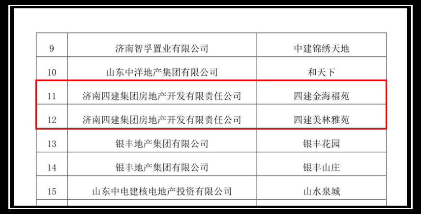 近日,濟(jì)南市房地產(chǎn)業(yè)協(xié)會(huì)發(fā)布了2021年度“客戶滿意工程”項(xiàng)目名單,由四建地產(chǎn)開(kāi)發(fā)的四建金海福苑和四建美林雅苑項(xiàng)目榮獲濟(jì)南市客戶滿意工程。