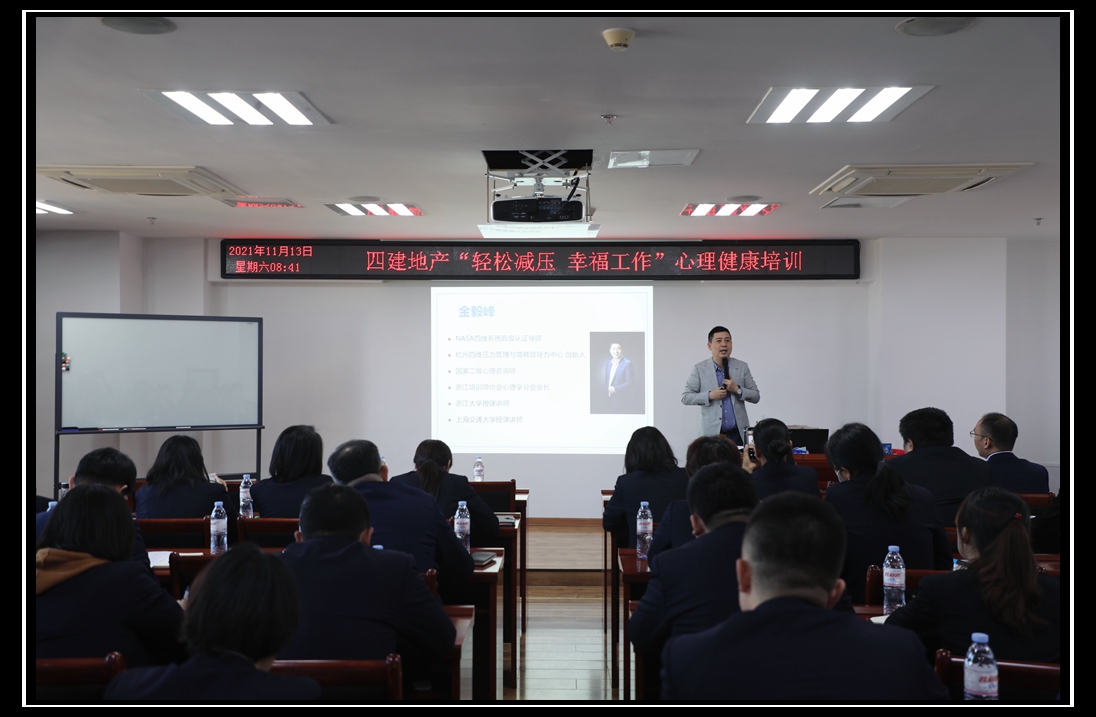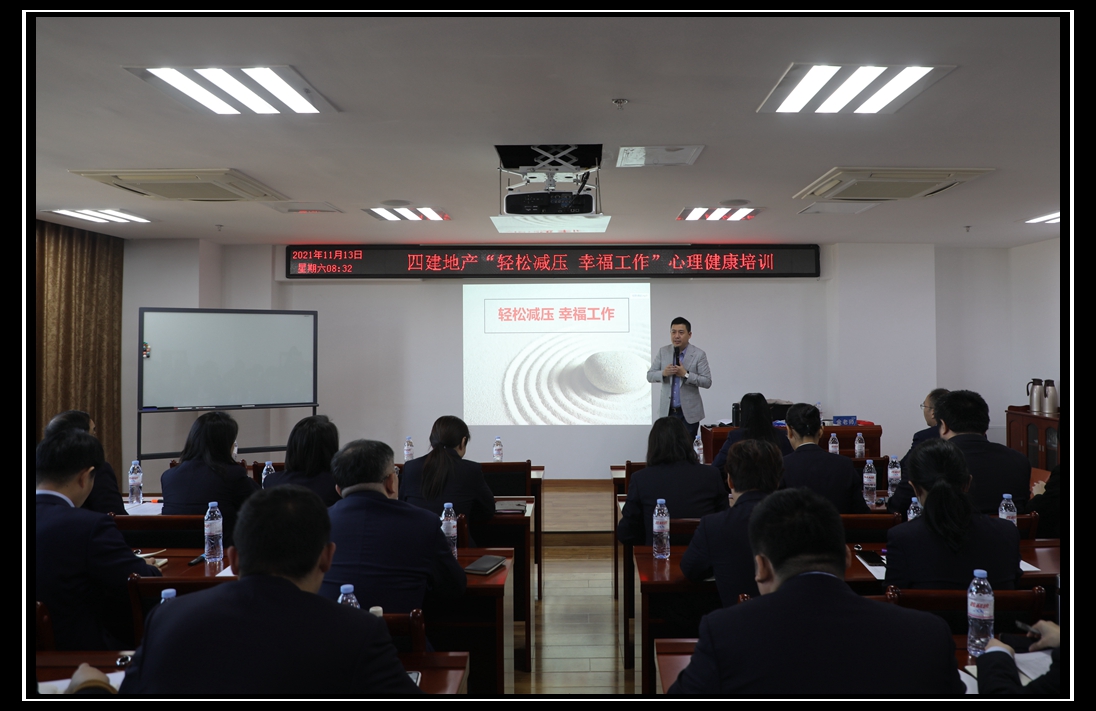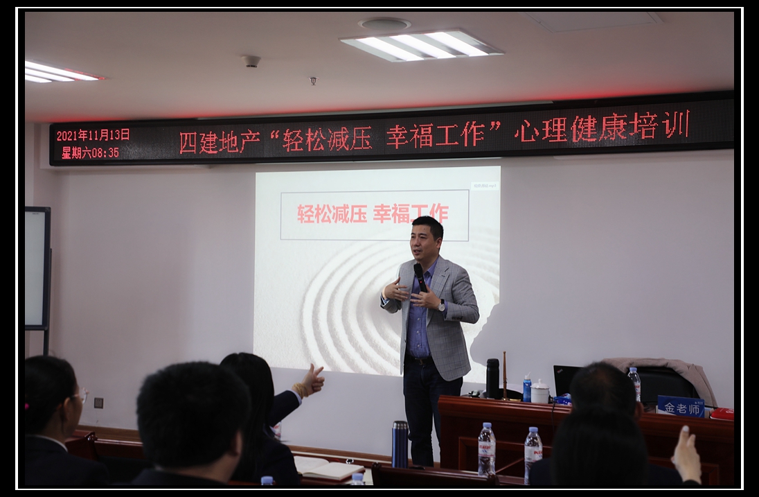 為幫助企業(yè)員工樹(shù)立健康的心理意識(shí),學(xué)會(huì)正確的自我心理調(diào)節(jié),緩解工作、生活中的壓力,11月13日,四建地產(chǎn)在23樓大會(huì)議室開(kāi)展了“心理健康”內(nèi)部培訓(xùn)。本次培訓(xùn)主要針對(duì)四建地產(chǎn)全體員工和萬(wàn)盛物業(yè)骨干員工,共60余人參加。