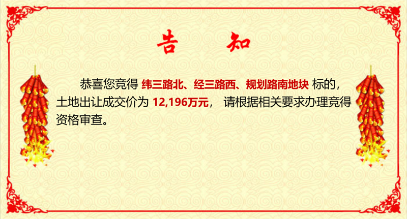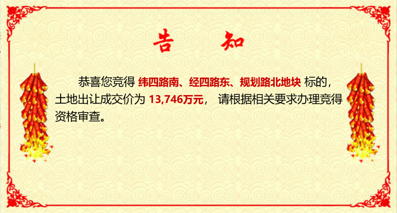 2021年12月6日,四建地產(chǎn)以3.3億元競(jìng)得位于濟(jì)陽(yáng)區(qū)緯四路以南、經(jīng)四路東、緯三路北、經(jīng)三路西三宗土地的建設(shè)用地使用權(quán),本次成交宗地面積約154畝。該項(xiàng)目規(guī)劃總用地面積約202畝,其中2021年5月24日,四建地產(chǎn)先于9966萬(wàn)元競(jìng)得該區(qū)域首期供地,土地面積約43.6畝。截止目前,共競(jìng)得該宗地197.6畝,剩余部分待濟(jì)陽(yáng)區(qū)政府完成征收手續(xù)后一并完成收儲(chǔ)工作。