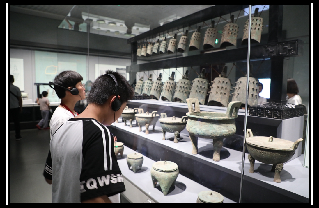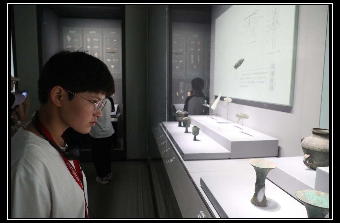 在智能導(dǎo)覽機(jī)器的講解中,學(xué)生們參觀了山東省博物館新推出的“海岱日新——山東歷史文化陳列”。該展覽分為史前、夏商周以及秦漢至明清三個(gè)部分,全面立體展現(xiàn)了山東六十萬(wàn)年人類(lèi)史、一萬(wàn)年文化史、五千年文明史、三千年齊魯文化史、一百年奮斗史。在展覽中,學(xué)生們欣賞到了許多珍貴的文物,如大汶口文化八角星紋彩陶豆、西周頌鼎等。此外,四建地產(chǎn)員工還帶領(lǐng)他們依次參觀了商代亞醜鉞、銀雀山漢簡(jiǎn)等十件“鎮(zhèn)館之寶”,濟(jì)陽(yáng)小朋友們?cè)谝魂囮嚫袊@聲中感受著齊魯大地的滄桑巨變,體會(huì)著中華優(yōu)秀傳統(tǒng)文化的魅力。