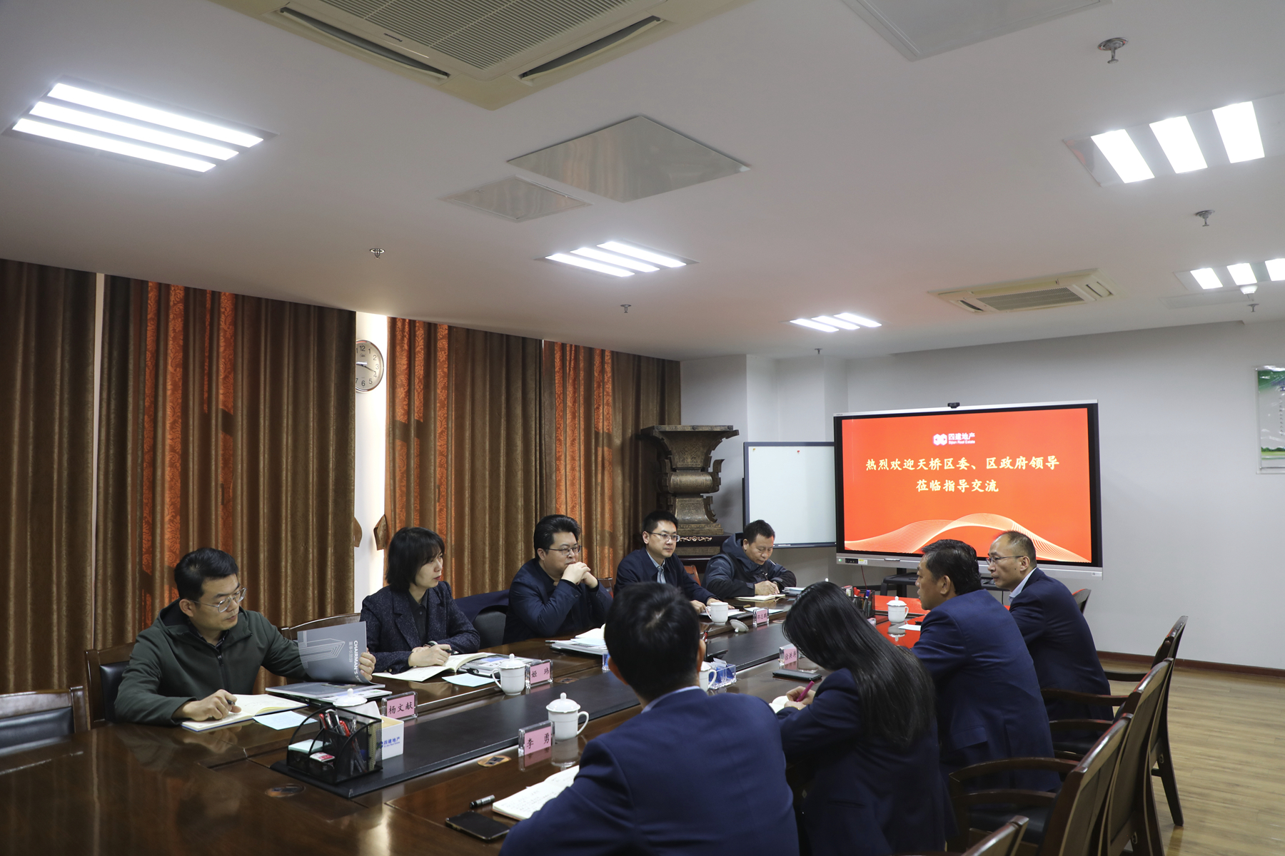 座談會(huì)上,徐總首先對李書記一行來訪表示熱烈歡迎,隨后介紹了四建地產(chǎn)的基本概況、開發(fā)模式、戰(zhàn)略布局及發(fā)展方向,并通過企業(yè)宣傳片讓到訪來賓對四建地產(chǎn)的企業(yè)文化、發(fā)展歷程以及資質(zhì)榮譽(yù)有了更加深入了解。徐總還表達(dá)了對天橋區(qū)委、區(qū)政府多年來為集團(tuán)和地產(chǎn)發(fā)展提供幫助與支持的謝意。