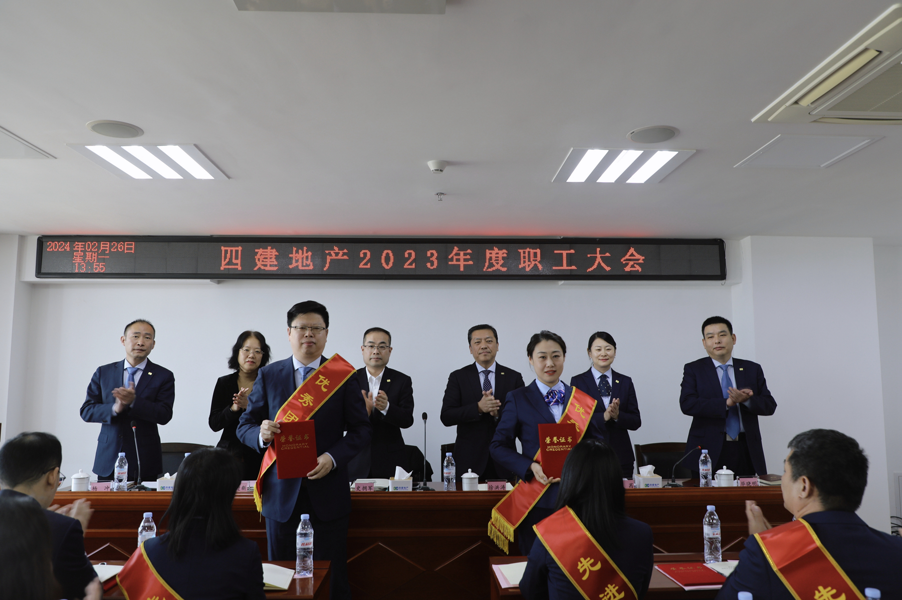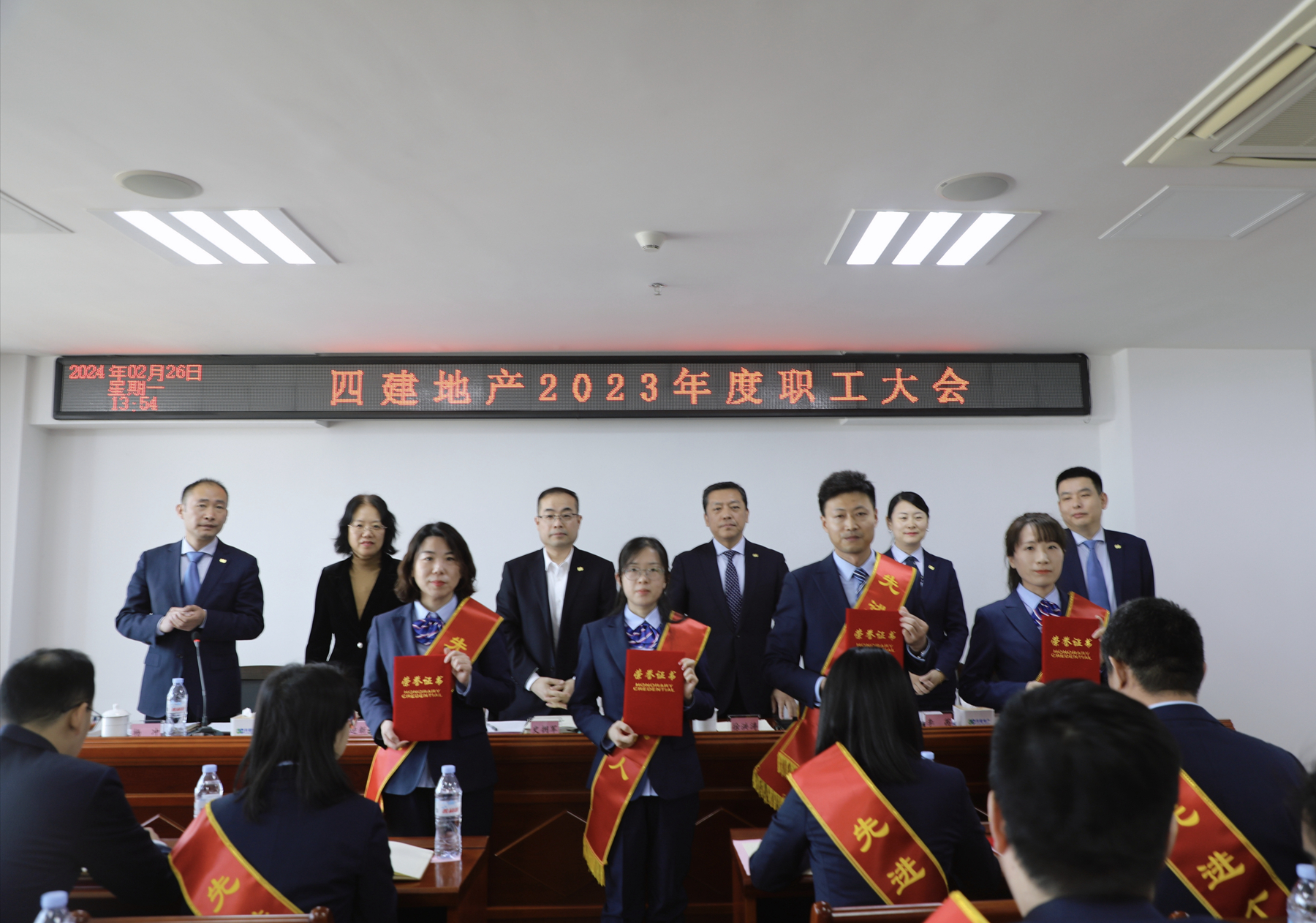會(huì)議開始前,在集團(tuán)人力資源部副部長(zhǎng)楊電輝監(jiān)督下,全體員工對(duì)中層以上領(lǐng)導(dǎo)干部進(jìn)行了民主評(píng)議。隨后,職工大會(huì)正式議程在國歌聲中拉開帷幕。四建地產(chǎn)副總經(jīng)理畢曉明宣讀表彰決定,對(duì)2023年度表現(xiàn)突出的12名優(yōu)秀員工和2個(gè)先進(jìn)團(tuán)隊(duì)進(jìn)行了表彰。四建地產(chǎn)常務(wù)副總經(jīng)理李茜向參會(huì)人員傳達(dá)了集團(tuán)公司十二屆五次職代會(huì)會(huì)議精神,共同學(xué)習(xí)了史總所作的總經(jīng)理工作報(bào)告。報(bào)告指出,2023年集團(tuán)公司緊緊圍繞“1+3+6”工作總基調(diào),勇拓市場(chǎng)、扎實(shí)管理、嚴(yán)控風(fēng)險(xiǎn),守住了企業(yè)健康發(fā)展底線,取得了來之不易的成績(jī),同時(shí)也客觀分析了當(dāng)前公司發(fā)展存在的不足,并圍繞2024年目標(biāo),從六個(gè)方面對(duì)全年的工作進(jìn)行了安排部署。