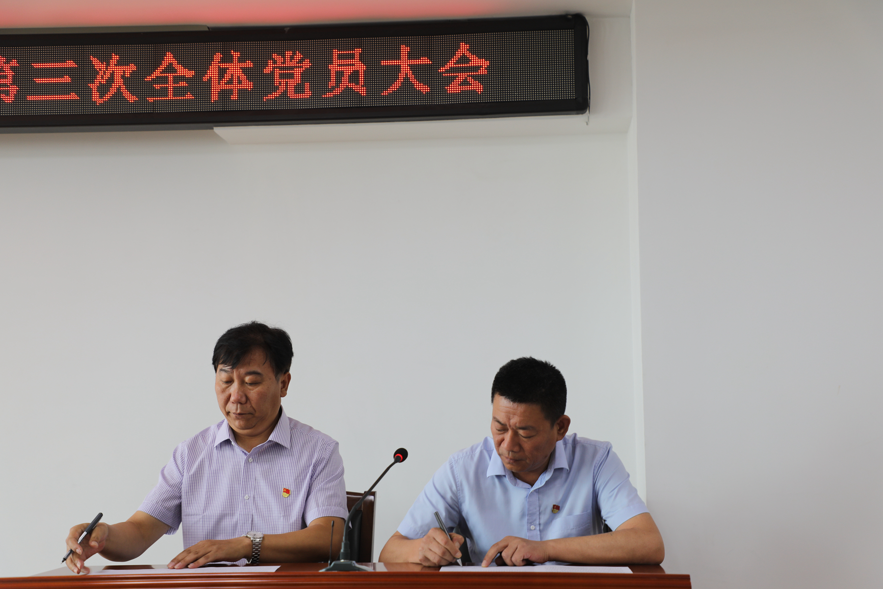 會(huì)議第二項(xiàng),集團(tuán)公司黨委委員、四建地產(chǎn)黨支部書記尚華與地產(chǎn)公司4名中層干部代表簽署《廉政目標(biāo)責(zé)任書》。