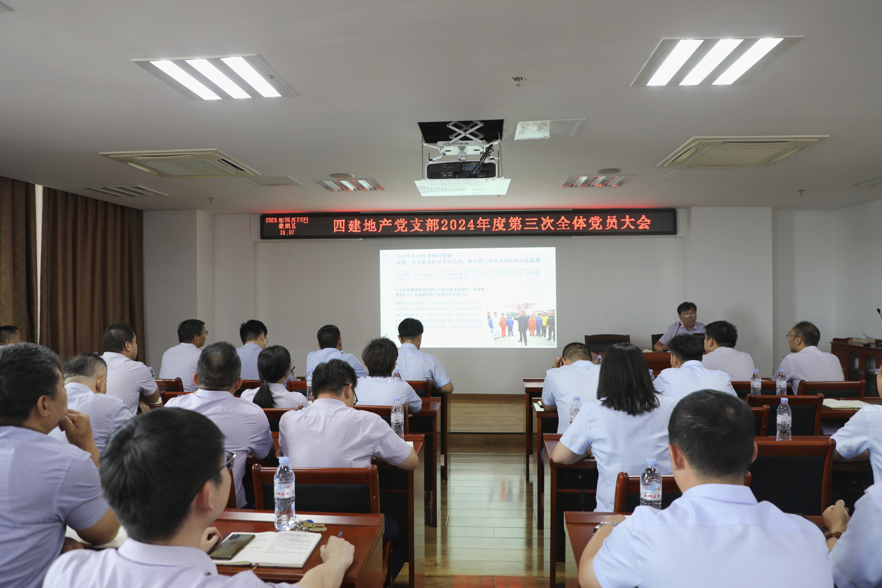 6月28日下午,四建地產(chǎn)黨支部在美林大廈23層大會(huì)議室召開2024年度第三次全體黨員大會(huì)暨專題黨課,36名正式黨員參加會(huì)議,會(huì)議由黨支部副書記楊沖主持。