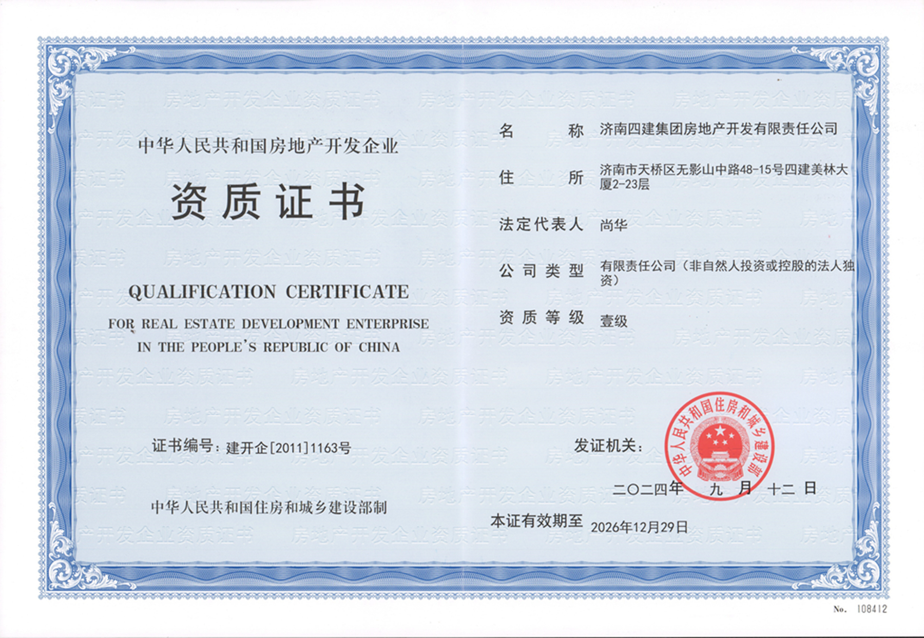 近日,經(jīng)住房和城鄉(xiāng)建設(shè)部審核、公示、公告,四建地產(chǎn)順利延續(xù)房地產(chǎn)開發(fā)企業(yè)一級(jí)資質(zhì),這是四建地產(chǎn)在2011年晉升一級(jí)資質(zhì)以來第四次成功延續(xù)房地產(chǎn)開發(fā)企業(yè)一級(jí)資質(zhì)。本次資質(zhì)審核工作因竣工備案表和法人變更等因素,較往年發(fā)布時(shí)間有所推遲。